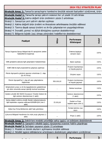 Stratejik Amaç 1: Tarsus’ta sanayileşme hamlesine öncülük edecek faaliyetleri sürdürmek, ürün ve hizmetlerde katma değer yaratma farkındalığı oluşturmak