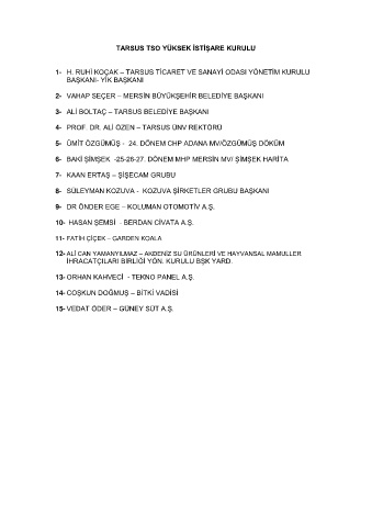 TARSUS TSO YÜKSEK İSTİŞARE KURULU