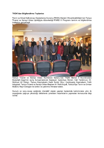 Tarsus Ticaret ve Sanayi Odası Konferans Salonu’nda TKDK Mersin İl Koordinatörü